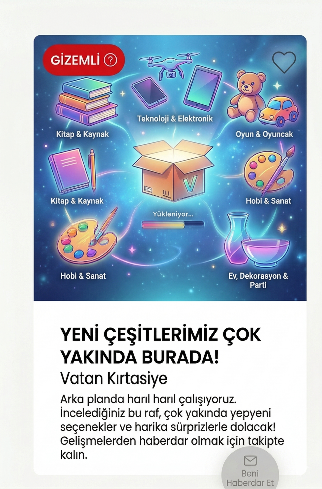 Arka planda harıl harıl çalışıyoruz. İncelediğiniz bu raf, çok yakında yepyeni seçenekler ve harika sürprizlerle dolacak! Gelişmelerden haberdar olmak için takipte kalın.
